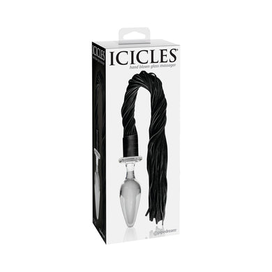 Pipedream Icicles No. 49 Leather Flogger With 4 in. Glass Anal Plug Handle Clear/Black