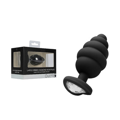 Ouch! Large Silicone Ribbed Diamond Heart Anal Plug Black