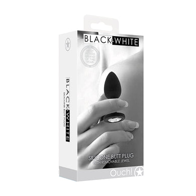 Ouch! Black & White Silicone Butt Plug With Removable Jewel Black