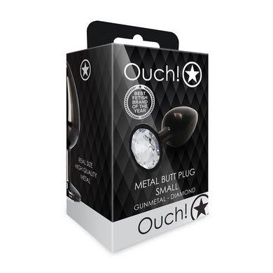 Shots Ouch! Round Gem Butt Plug Small Gunmetal/Diamond