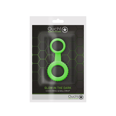 Ouch! Glow in the Dark Cockring & Ball Strap Neon Green